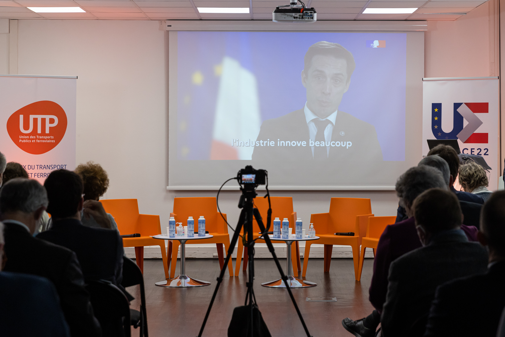 « L'Europe s'est fixée des objectifs en matière de transition écologique : - 55% de nos émissions en 2030, et neutralité carbone en 2050. La solution pour atteindre ces deux objectifs ? Développer les transports qui émettent le moins, et cela veut dire : plus de transports en commun. L’État est au rendez-vous et le restera pour aider ceux qui s’engagent en faveur d’une mobilité plus durable. Merci à l’UTP pour cet événement, qui permet de le rappeler, de se projeter, et d’avancer ensemble. Train léger, ouverture à la concurrence et digitalisation du réseau ferroviaire, électrification et retrofit des bus, sont des pistes pour ceux s’engagent, de longue date, pour une mobilité plus durable. » Enfin, le ministre a annoncé un appel à projets, qui sera bientôt lancé, sur le train à hydrogène et le retrofit des bus et cars diesel. »