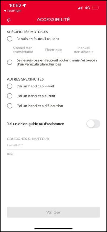 Tous les clients atteints d’un handicap visible ou invisible affectant leur mobilité – visuel, moteur, auditif, troubles d’élocution...– peuvent désormais préciser leur situation dans leur profil client avec la possibilité de sélectionner plusieurs options simultanément comme l’existence d’un handicap visuel ainsi que l’accompagnement par un chien guide.