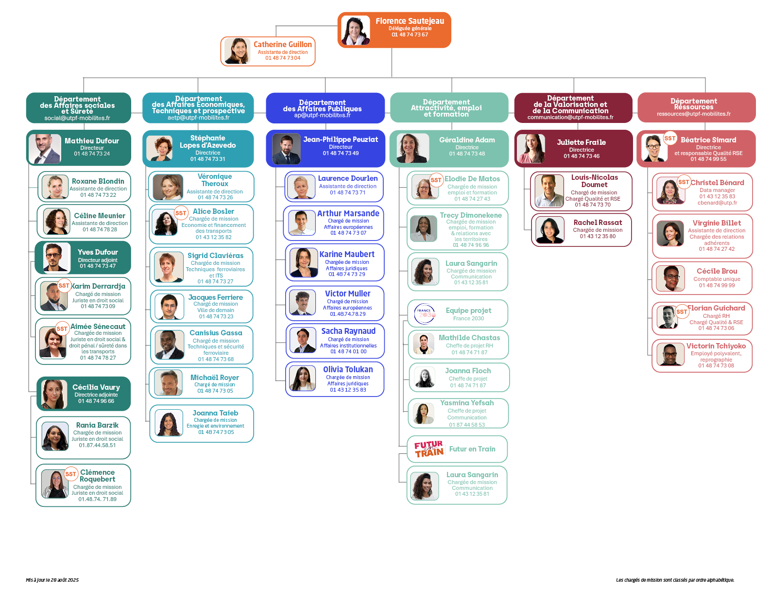 Retrouvez les membres de l'équipe de l'UTPF et leur coordonnées ci-dessous, et l'organigramme en bas de cette page.